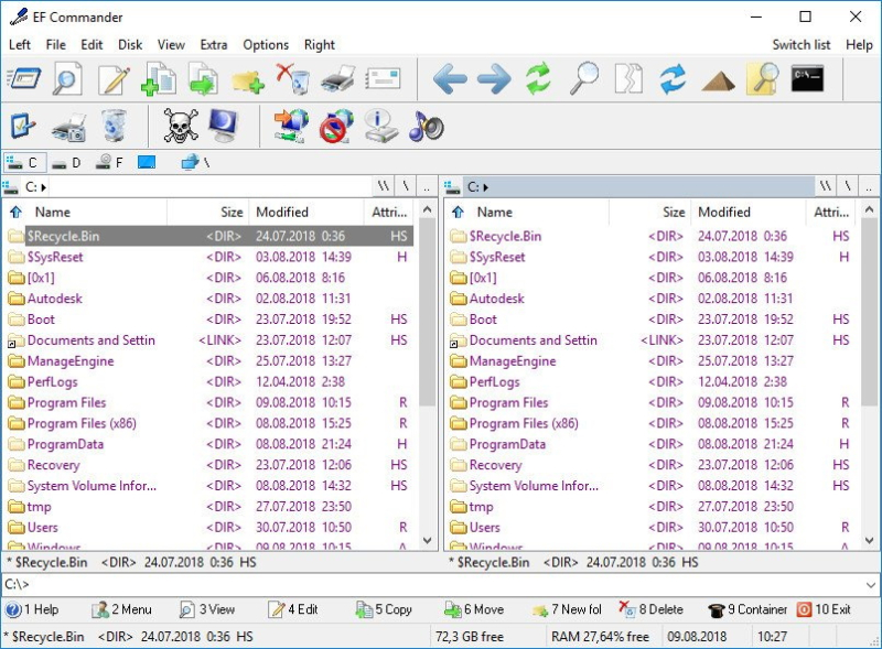 EF Commander is a complex and multi-featured file manager that a wide range of users, from beginners to professionals, will find easy to use. It is the result of many requests received by the author. The first version was written in 1994, under the OS/2 operating system using Presentation Manager, as a personal replacement for the old DOS program Norton Commander. In 1996 it was ported to the 32-bit Microsoft Windows operating system.
