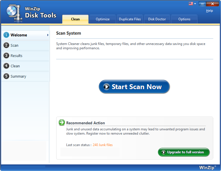 Free Download WinZip Disk Tools - Scan your hard drive to improve performance and safely clean junk files to optimize your drive space